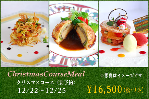 | 【12月25日まで期間限定】クリスマスディナーコース 昼・夜受付いたします。 |